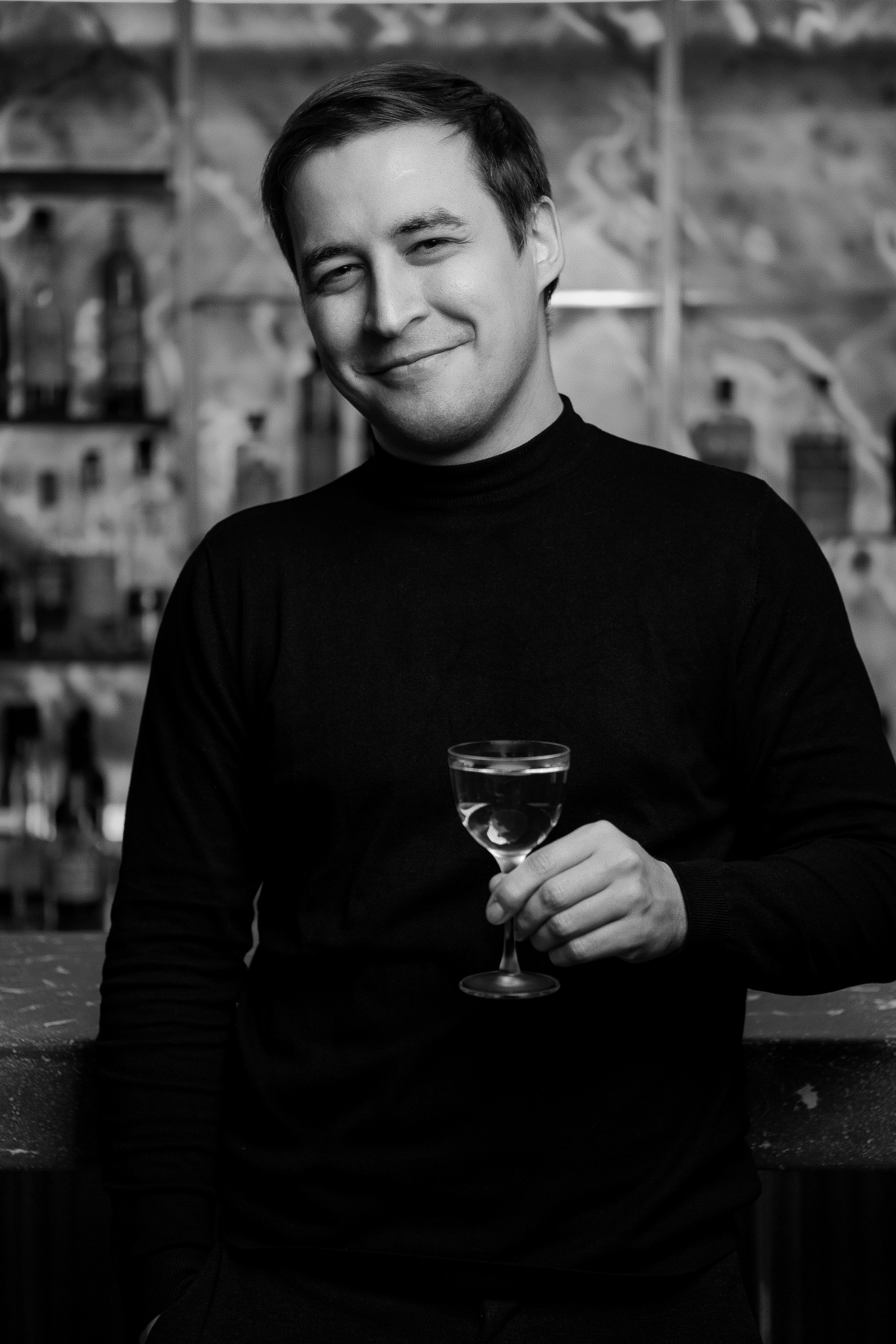Имя энтузиаста коктейльного сторителлинга звучит в барной индустрии Петербурга уже больше 10 лет, и сейчас Северинов трудится во славу ресторанов сообщества italy — «Ателье tapas&bar» и Jam Café. Для коктейля Palomino Gimlet Виталий подчеркивает паломино (главный сорт винограда для производства испанских хересов) гидролатом из сирени и соленым лаймовым кордиалом в испано-мексиканском «Ателье». А в профранцузском Jam передает привает главному японскому кварталу в Париже коктейлем на умесю и чае гекуро.