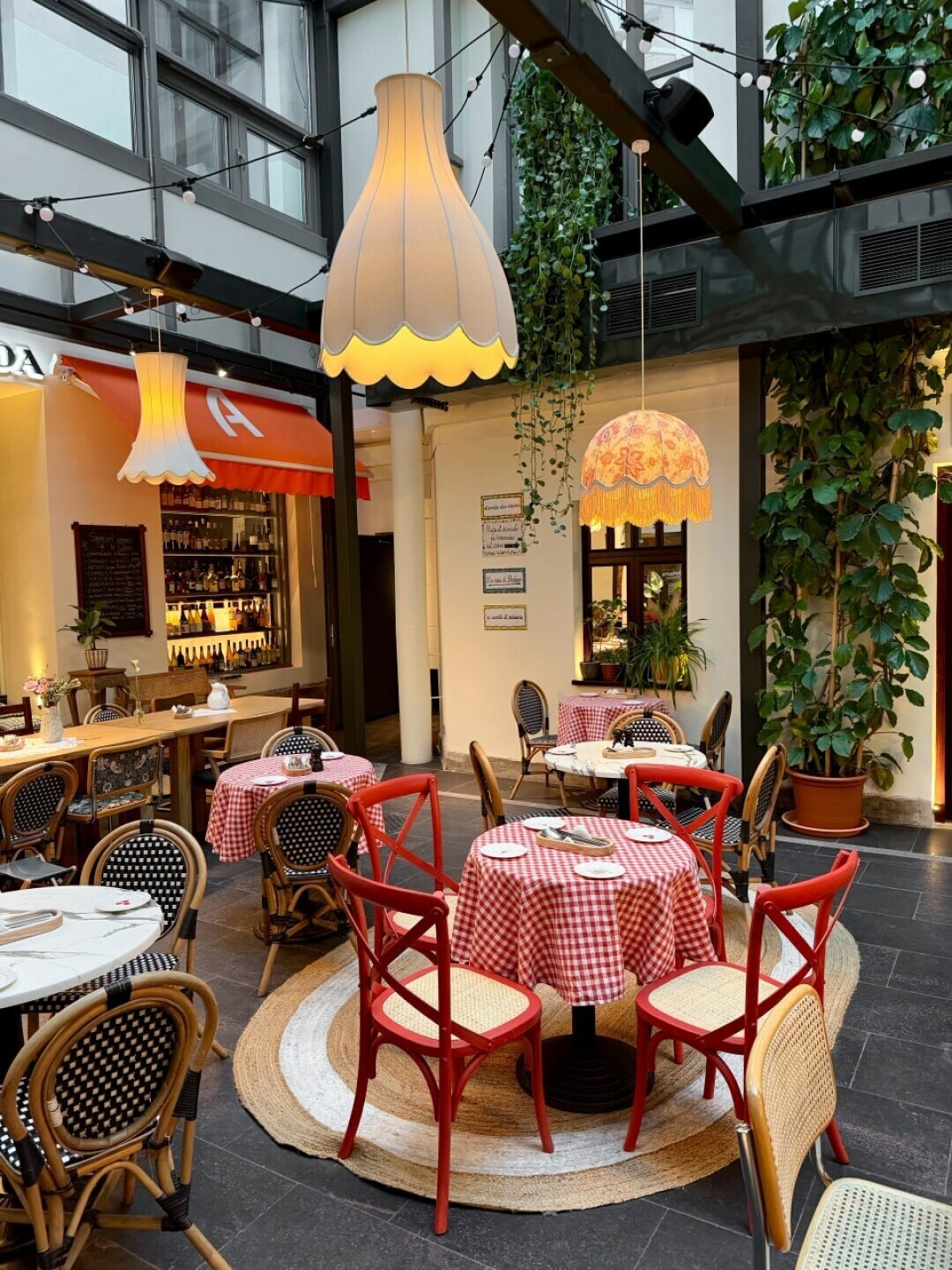 Вечное лето царит в вайбовом крытом дворе-колодце доходного дома Пантелеймона Бадаева. Обустроили его Саша Столярова, Валера Дятлов и Женя Элькина (двигатели нарядных вечеринок Çava!). Развесили белье на веревках по всем канонам итальянской деревушки, пригласили шеф-повара Андрея Антипина (экс Atelier и «Лендок»), разожгли дровяную печь для пиццы с телячьими щечками и малосольным цукини и ждут на бокал вина из Токая, Фрушки-Горы, долины Бекаа и с холмов Самарии.