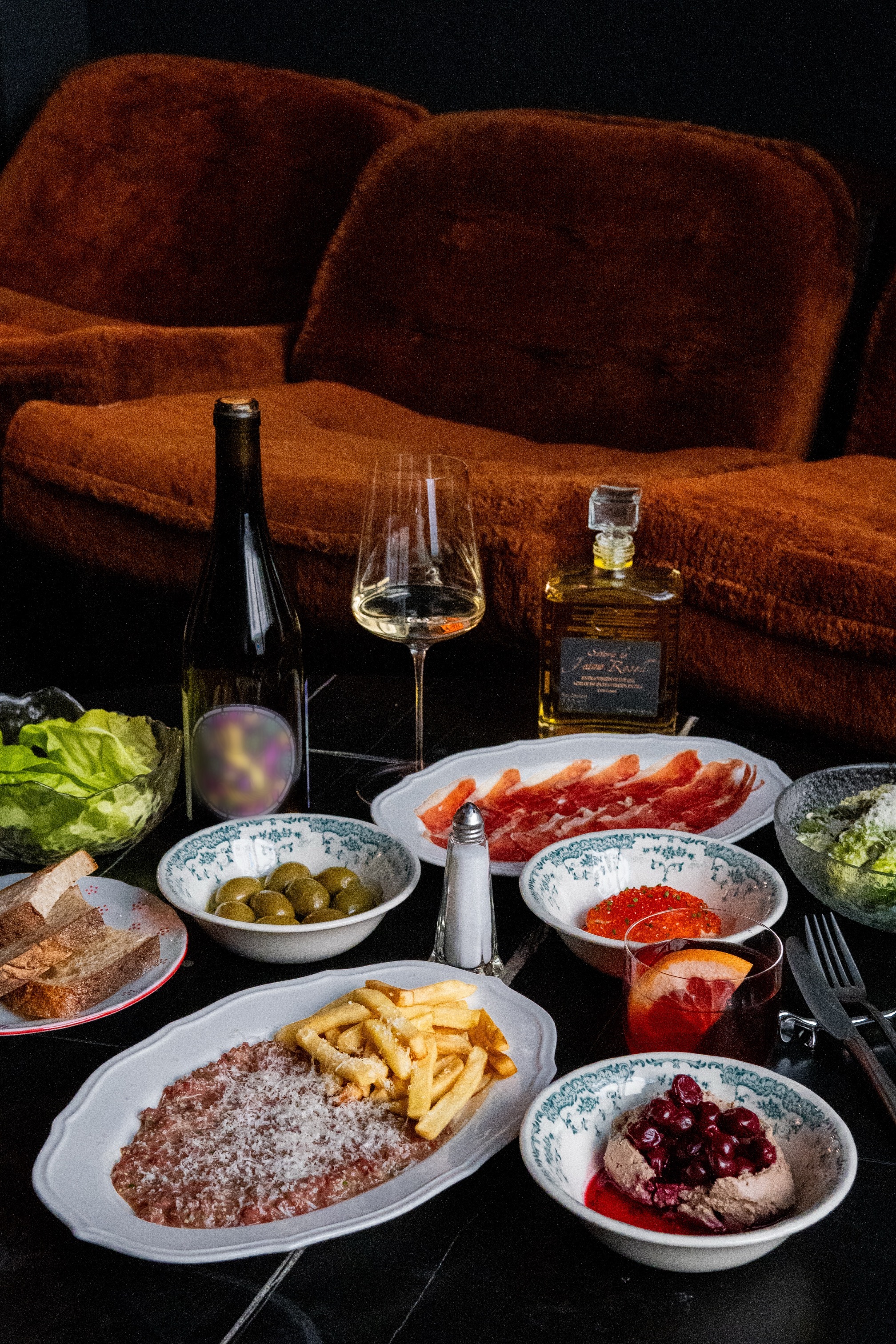 Интеллектуальный бар-гостиная Александра Гутаковского (экс-Utopist), где готовят негрони со вкусом лимонного пирога, а саунд не уступает в важности флейвора. Гордость — две винтажные Hi-Fi-системы: американская Altec Lansing 1978 года и австралийская Pitt&Giblin Superwax. Слушаем винил и заказываем сибаса с салом и виноградом под шампань, рваную баранину с мятой — под авангардную Бургундию. Интерьер от архитектора Никиты Капитурова тоже эстетский: иконы дизайна (коллекционные стулья Vitra и Flötotto — никаких реплик!) и картины молодых художников.