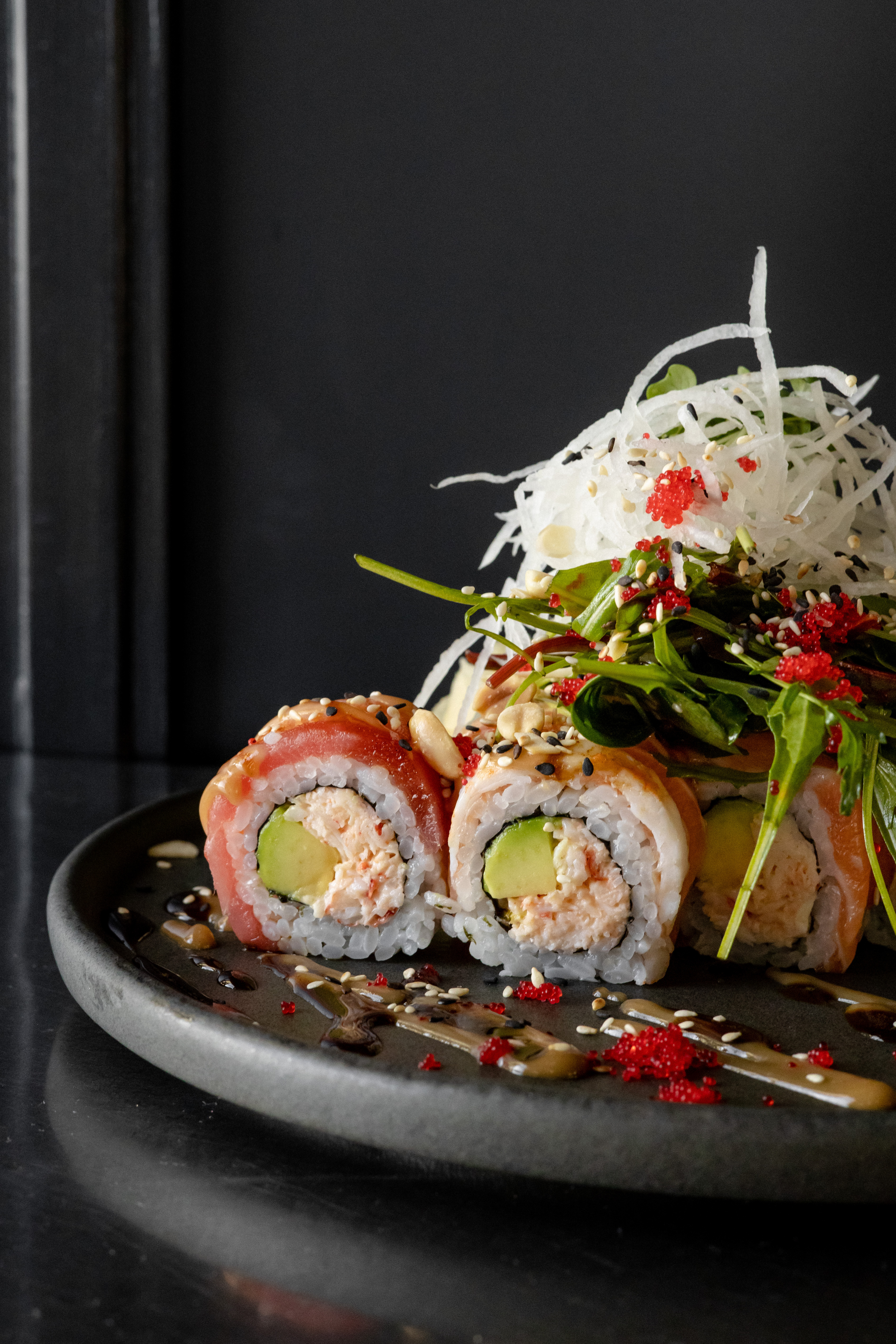 Пионеры Японии новой волны в России влюбили всех в свои многоэтажные роллы (небоскреб из риса, щедрого куска рыбы, вороха салата и шапки дайкона). Обязателен к заказу татаки-ролл с тунцом — восемь лет на первой строчке в меню. Также в топ‑3 — роллы с лососем и камчатским крабом и «Радуга» с пятью видами морепродуктов. А том-яму Subzero вообще надо памятник поставить — сколько похмелий он спас, не счесть.